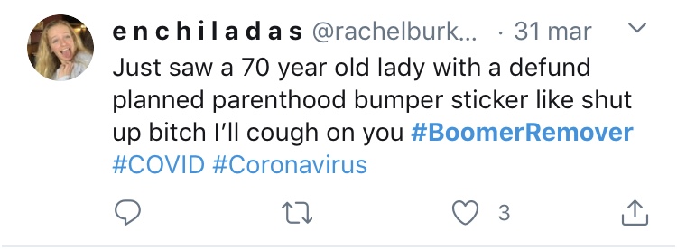 ParmAteneo (Tuesday, 7 April, 2020) - “Ho appena visto una vecchia signora di 70 anni con l’adesivo ‘Abolizione dei fondi alla genitorialità pianificata’, stai zitta o ti tossisco addosso” Stati Uniti: altro che Paese dove ‘i... -